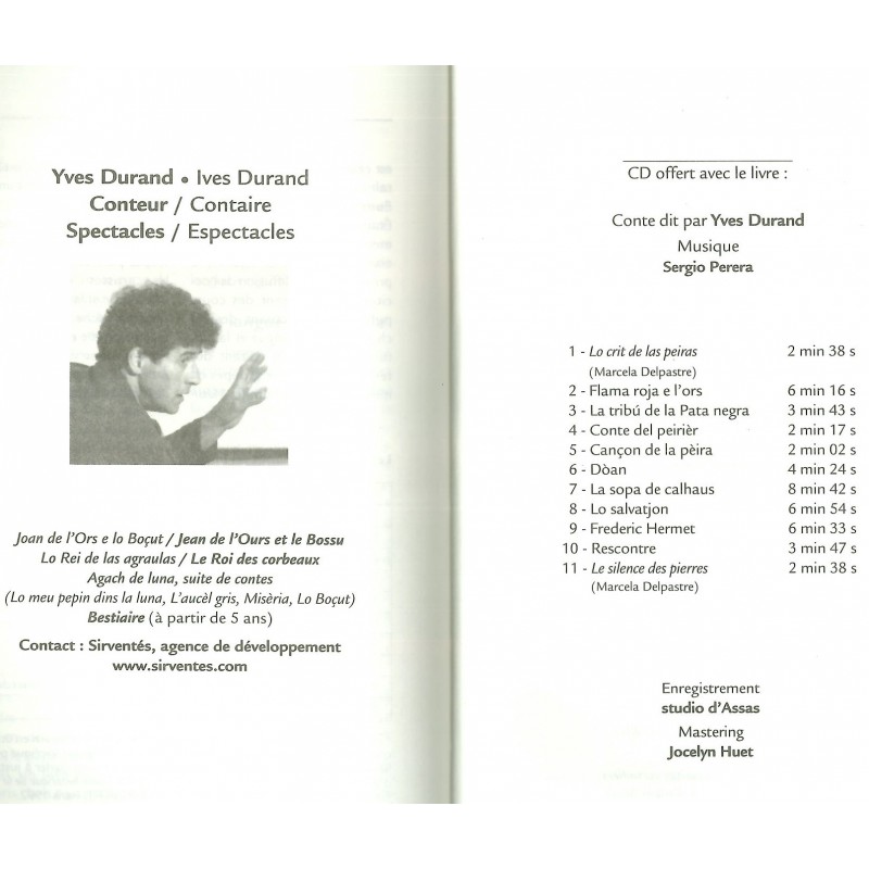 Bilingüe amb tèxtes francés e occitans cap e cap e CD en occitan ofèrt, inserit dins lo libre : conte dich per Ives Durand, musica compausada e interpretada per Sergio Perera.